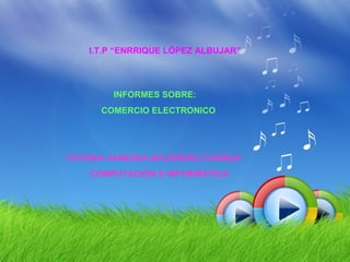 Este documento trata sobre el comercio electrónico. Explica que el comercio electrónico consiste en la compra y venta de productos o servicios a través de Internet u otras redes. Luego describe algunas ventajas del comercio electrónico para las empresas como beneficios operacionales y la capacidad de alcanzar nuevos mercados de forma más rápida y económica. Finalmente, menciona que existen mitos sobre el comercio electrónico y la necesidad de apoyar las ideas con datos reales en lugar de hablar sin fundamento.