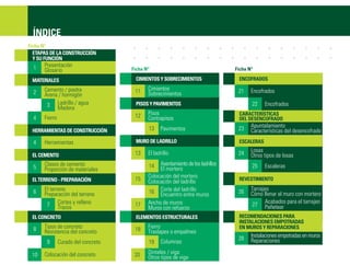 Este documento describe los materiales y herramientas necesarios para construir una vivienda, incluyendo cemento, arena, piedra, ladrillos, madera, fierro y agua. Explica los diferentes tipos de cada material, sus usos, proporciones requeridas y recomendaciones para su almacenamiento y cuidado. También presenta las principales herramientas de construcción y las clases de cemento disponibles.