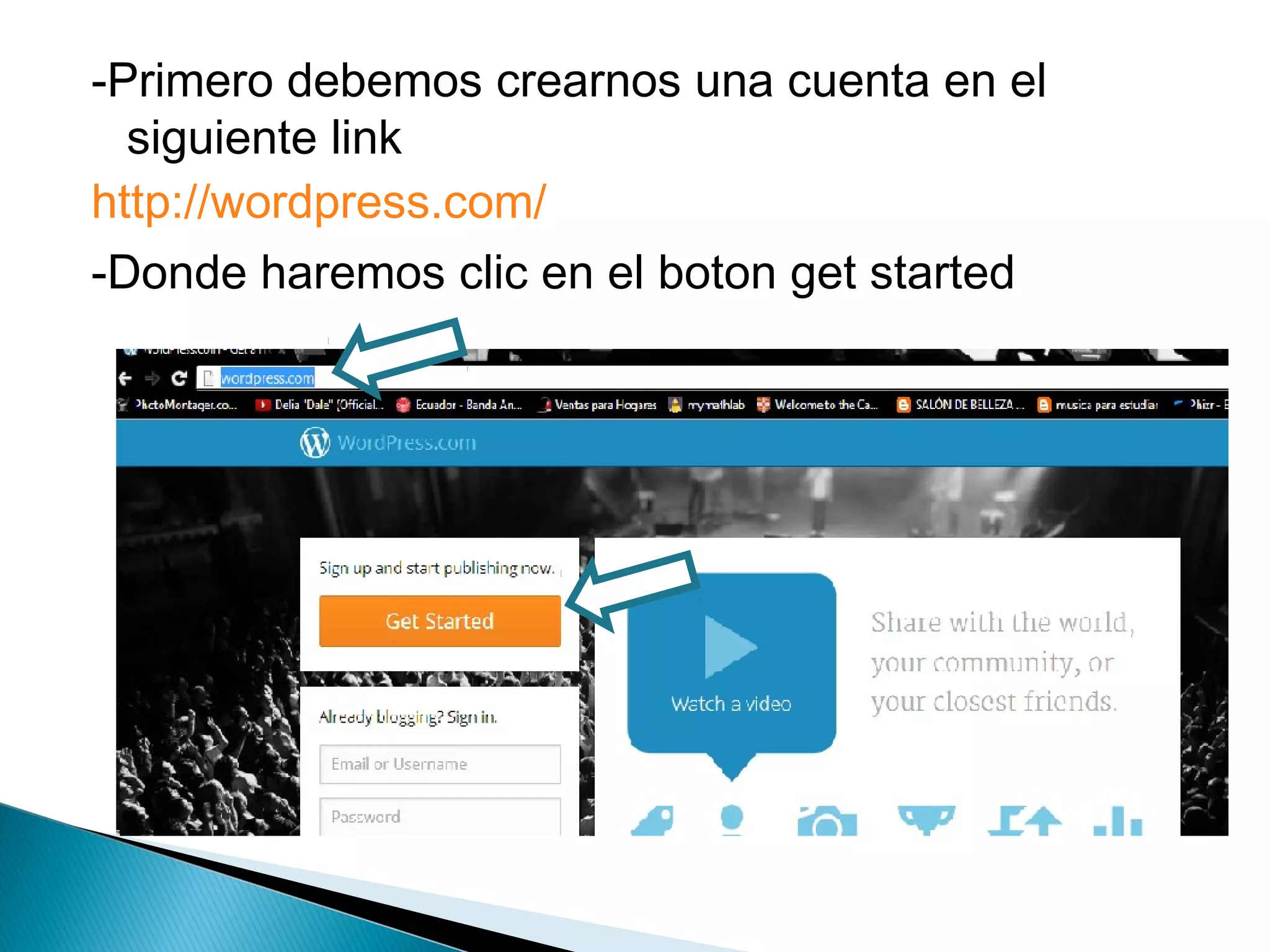 Este documento proporciona instrucciones para crear una cuenta en WordPress y publicar entradas y widgets en un blog. Explica que primero debes crear una cuenta en WordPress.com e ingresar tus datos, luego verificarás tu cuenta a través de un correo electrónico. Una vez activada tu cuenta, podrás publicar entradas nuevas y agregar widgets seleccionándolos en las pestañas de "Entradas" y "Apariencia" en la barra de herramientas de tu blog.