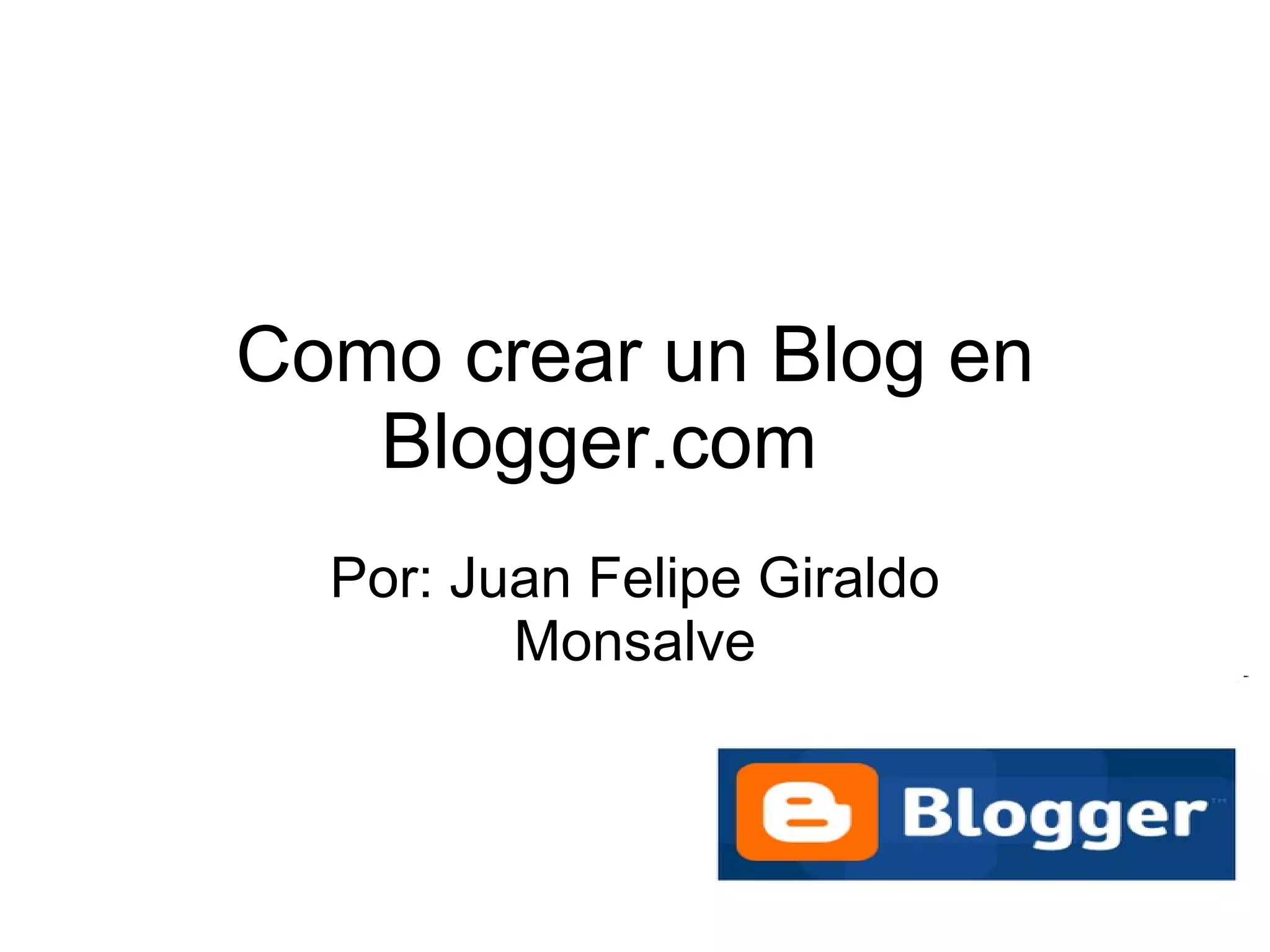 Para crear un blog en Blogger.com se requiere una cuenta de correo electrónico, ingresar a Blogger.com y hacer clic en "crear tu blog ahora", luego llenar los campos solicitados como nombre de usuario, nombre a mostrar, nombre y dirección del blog, seleccionar una plantilla, y hacer clic en continuar para tener listo el nuevo blog.