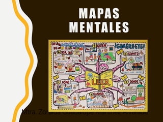 El documento describe los mapas mentales, que son formas gráficas para organizar ideas clave usando colores e imágenes. Explica que se deben colocar la idea principal en el centro de la página y luego trazar ramas hacia afuera con palabras clave e ideas relacionadas, usando más colores, líneas curvas y imágenes. Los mapas mentales sirven para representar, informar y planificar sobre un tema.
