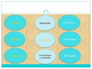 Este documento presenta un proyecto sobre cómo evitar la corrosión. Explica qué es la corrosión, los objetivos de investigar este tema, una hipótesis sobre por qué ocurre la corrosión en los metales, y una introducción al tema. Luego describe experimentos realizados y conclusiones sobre cómo la corrosión puede desoxidarse usando vinagre, jugo de limón o refresco negro. El documento incluye también un crucigrama y una autoevaluación del proyecto.