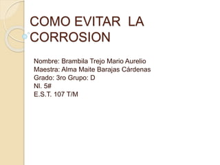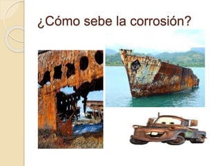 El documento describe la corrosión como el deterioro de un material debido a una reacción electroquímica con su entorno. Explica que la corrosión afecta a todos los materiales y ambientes y representa un gran costo económico. También discute métodos para controlar la corrosión como el uso de inhibidores químicos e identifica materiales resistentes a la corrosión basados en ensayos de laboratorio.