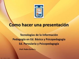 El documento ofrece consejos para hacer presentaciones efectivas, señalando que una presentación debe ser visual y enfocarse en atraer la atención de la audiencia más que en entregar mucha información textual. Recomienda que las presentaciones sean simples, usen imágenes en lugar de plantillas prediseñadas, tengan un máximo de 10 diapositivas y 20 minutos de duración, y usen un tamaño de letra de al menos 30 puntos.