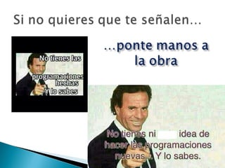 Este documento proporciona instrucciones sobre cómo programar el currículo escolar. Explica los 7 pasos necesarios: 1) crear un esquema de unidades, 2) secuenciar los estándares de aprendizaje, 3) trasladar la información a un modelo de programación, 4) completar contenidos y criterios, 5) definir instrumentos de evaluación, 6) asignar pesos a los estándares, y 7) completar el resto de la programación. También discute cuestiones como la distribución de estándares entre unidades y evaluaciones, y