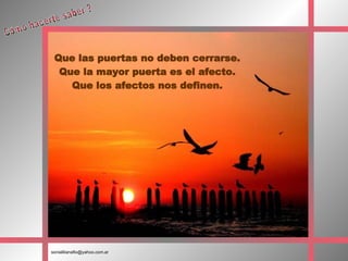 Este documento explora diversos temas relacionados con la vida y las relaciones humanas. Discute que la vida no tiene normas establecidas y que es importante buscar el equilibrio entre el amor y el odio, así como entre dar y recibir. También habla sobre la importancia de construir puentes entre las personas en lugar de muros, y que la vida se trata de sentirla a través de los sentidos corporales y la mente.