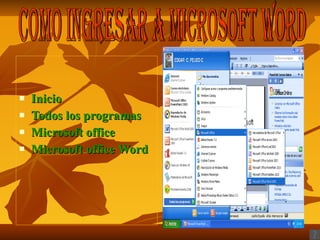 El documento proporciona instrucciones sobre cómo realizar varias tareas básicas en Microsoft Word, como ingresar a Word, alinear texto a la izquierda, guardar un documento, aplicar formato de negrita, cambiar la fuente, establecer el tamaño de fuente, centrar texto y agregar imágenes e imagen wordArt a un documento. Explica los pasos necesarios para completar cada tarea de una manera simple y directa.