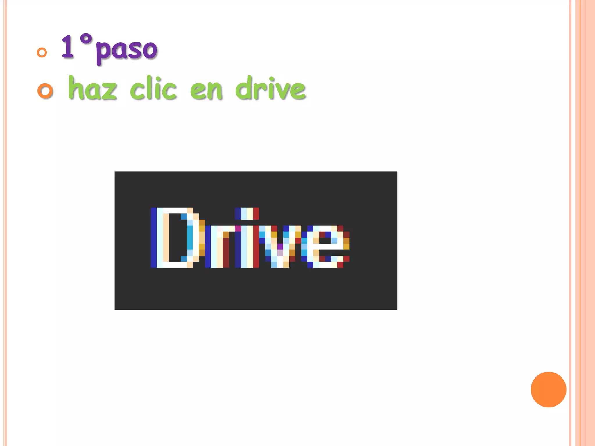 El documento proporciona 7 pasos para subir un PowerPoint a Google Drive y luego publicarlo en un blog: 1) hacer clic en Drive, 2) presionar Archivos, 3) buscar el PowerPoint, 4) subir el archivo, 5) seleccionar el PowerPoint, 6) abrir el blog y hacer clic en Nueva entrada, 7) hacer clic en Publicar para publicar el PowerPoint en el blog.