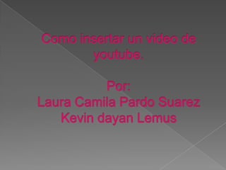 Este documento proporciona 11 pasos para insertar un video de YouTube en una presentación de PowerPoint, incluyendo iniciar PowerPoint, buscar el video en YouTube y compartirlo, copiar el código de inserción, e insertar el video en PowerPoint usando la opción "Vídeo desde sitio web".