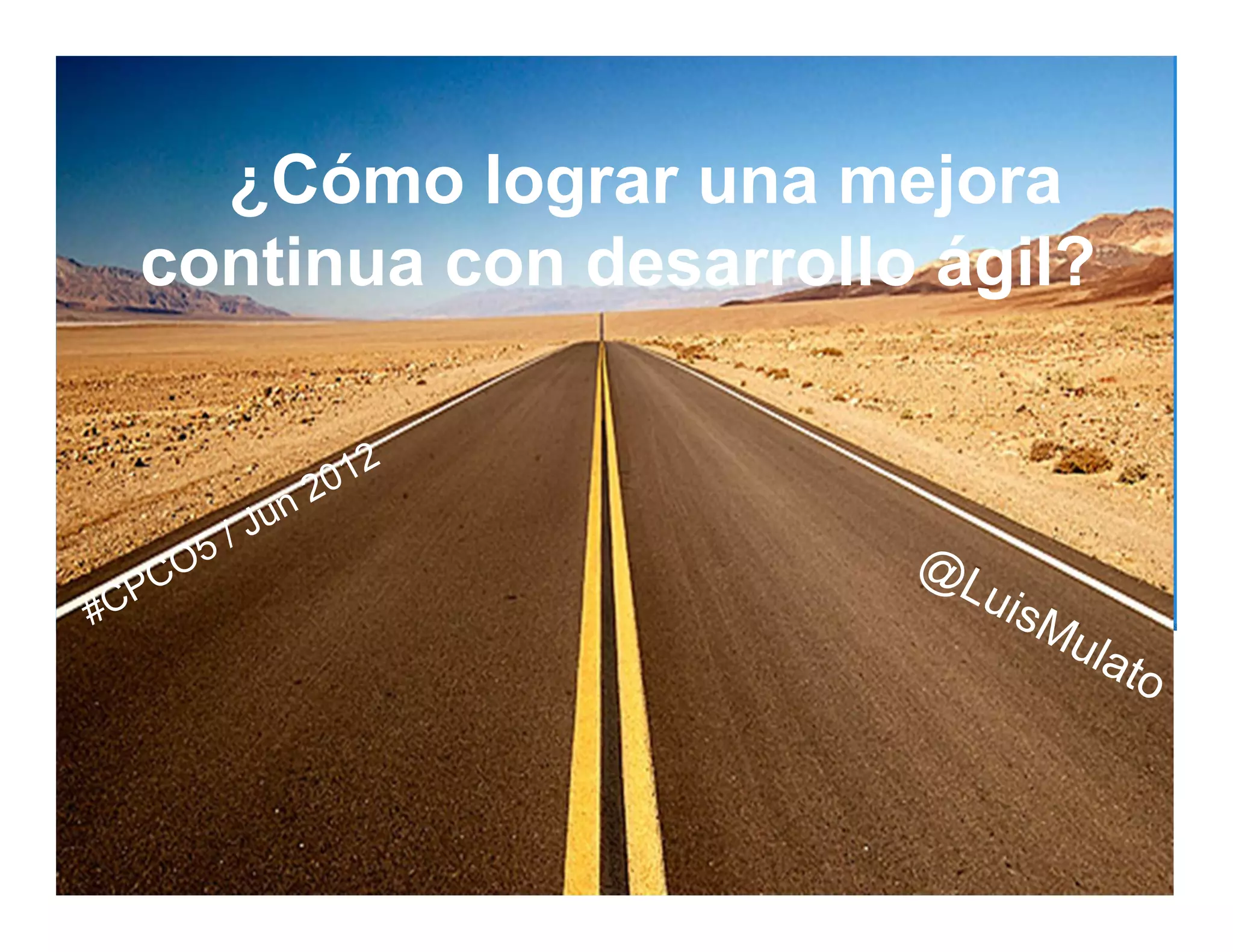 Este documento presenta diferentes estrategias y tácticas para lograr una mejora continua en proyectos de desarrollo ágil. Primero, sugiere evaluar el grado actual de adopción ágil mediante checklist y autoevaluaciones. Luego, propone formas de mejorar como establecer reglas simples, adoptar posiciones flexibles en lugar de roles rígidos, aplicar técnicas de retrospectiva y buscar capacitación continua. Finalmente, recomienda frameworks como las "4 capas" para analizar la filosofía, metodología,