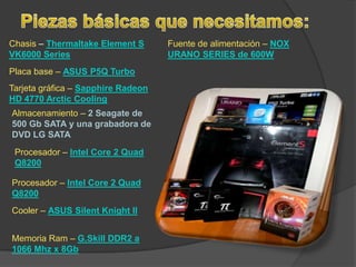 Los estudiantes Henry Pilapanta y Andrés Martínez crearon un ordenador usando piezas como una placa base ASUS, una tarjeta gráfica Sapphire y un procesador Intel Core 2 Quad. Montaron las piezas en este orden: chasis, fuente de alimentación, placa base con procesador y memoria RAM, discos duros y unidad óptica, tarjeta gráfica y cables. Al final probaron que todos los componentes funcionaban correctamente.