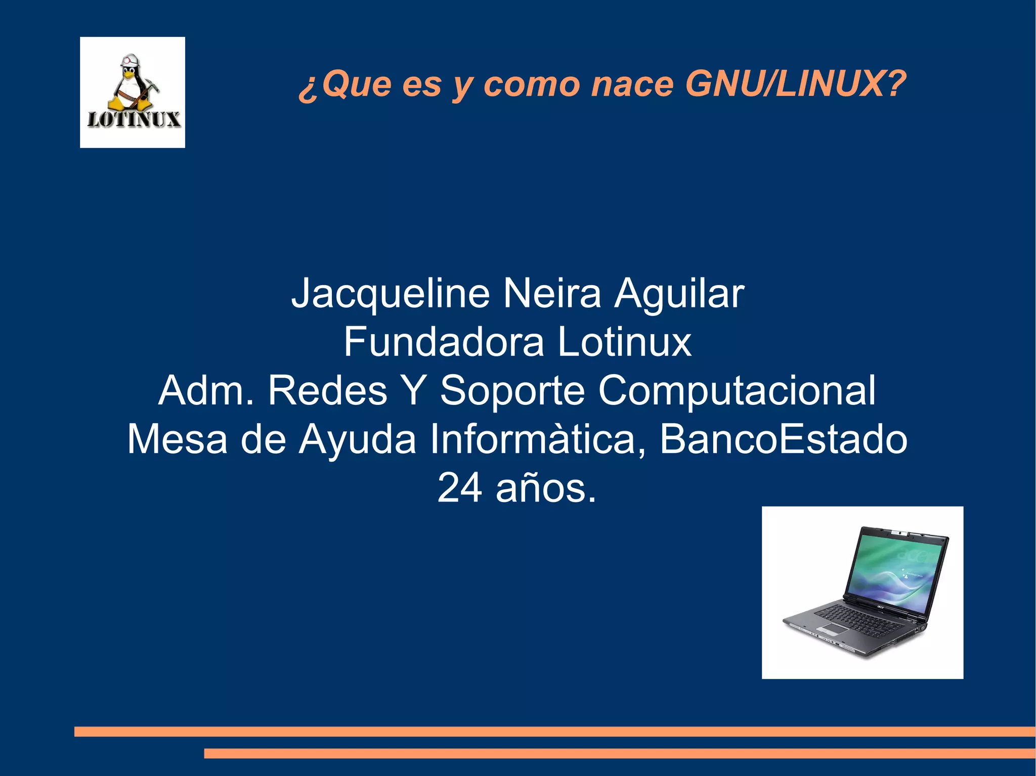 GNU/Linux es un sistema operativo libre creado por Richard Stallman en la década de 1970 y desarrollado posteriormente por Linus Torvalds en 1991. Se compone del núcleo Linux y del sistema GNU. Es multiusuario, multitarea y puede funcionar en múltiples plataformas. Se distribuye bajo la licencia GPL que garantiza la libertad de los usuarios para ejecutar, copiar, distribuir, estudiar y modificar el software.