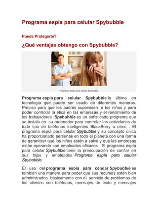 El programa espía para celular Spybubble permite a los padres supervisar las actividades de sus hijos y a los empresarios controlar el rendimiento de sus empleados. Este software brinda tranquilidad al garantizar la seguridad de los niños y la efectividad en las operaciones comerciales. Spybubble ofrece una solución moderna y eficiente para la vigilancia de la comunicación a través de teléfonos inteligentes.