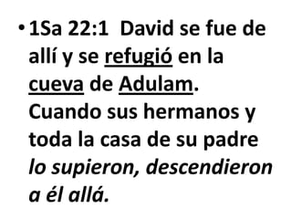 David se refugió en la cueva de Adulam después de huir del rey Saúl. Allí se reunieron con él hombres afligidos por la opresión, endeudados y amargados. David se convirtió en su líder y reunió unos 400 hombres. Más tarde, algunos de sus valientes guerreros incluyeron a Joseb-basebet el sabio, Adino el fuerte como una lanza, y Eleazar hijo de Dodo el amoroso.