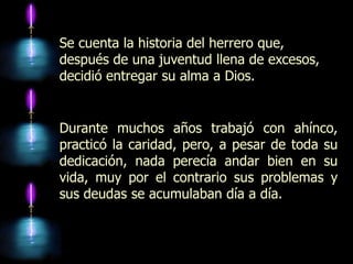 El herrero explica a su amigo que Dios lo está sometiendo a pruebas difíciles (calor, martillazos y agua fría) para transformarlo, como él transforma el acero en espadas, y que acepta este proceso aunque sea doloroso con la esperanza de que Dios no lo deseche sino que logre darle la forma deseada.
