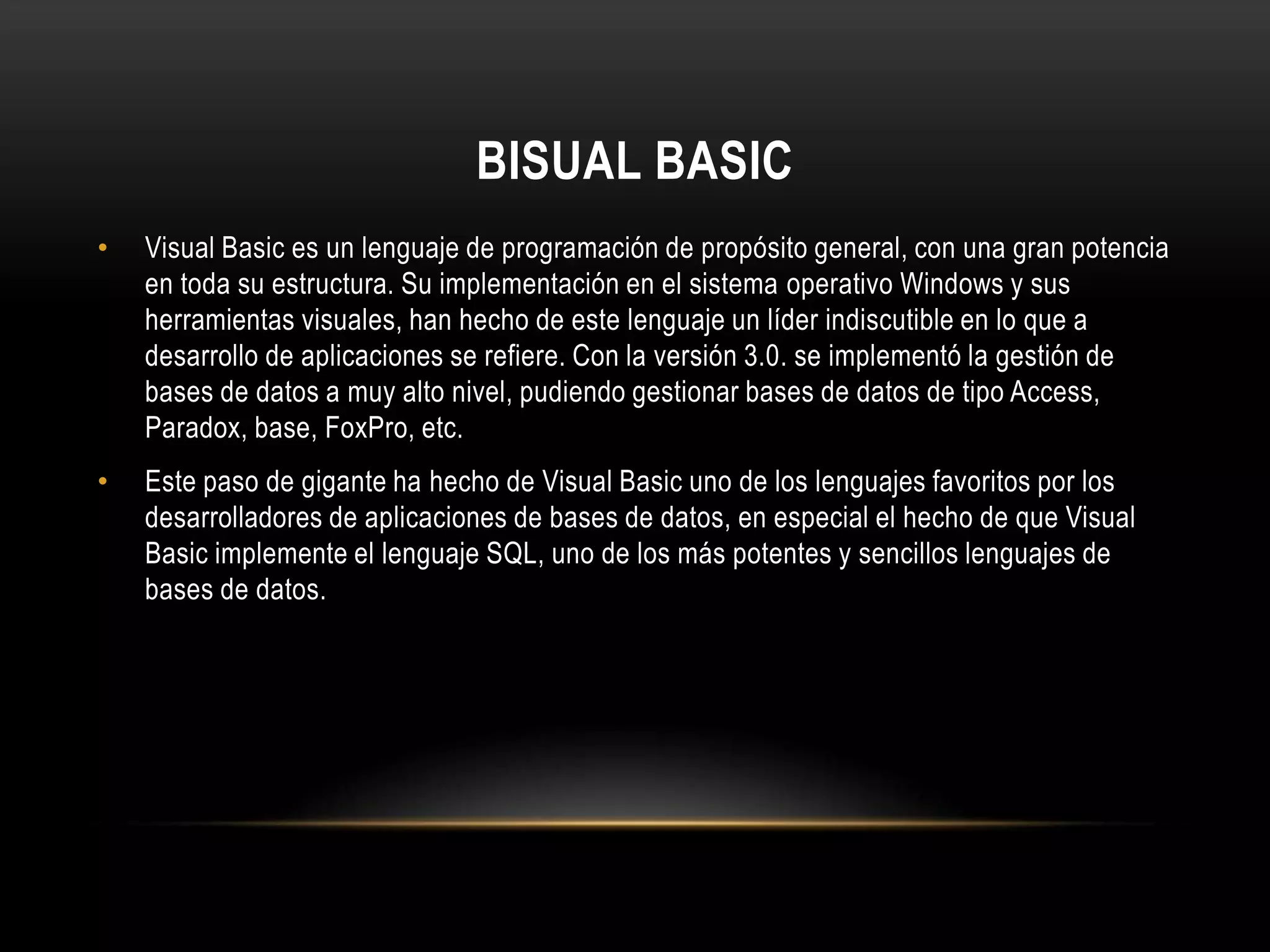 1. El documento describe cómo utilizar SQL en Visual Basic 6.0, explicando que SQL es un lenguaje orientado a bases de datos para realizar consultas de manera sencilla.