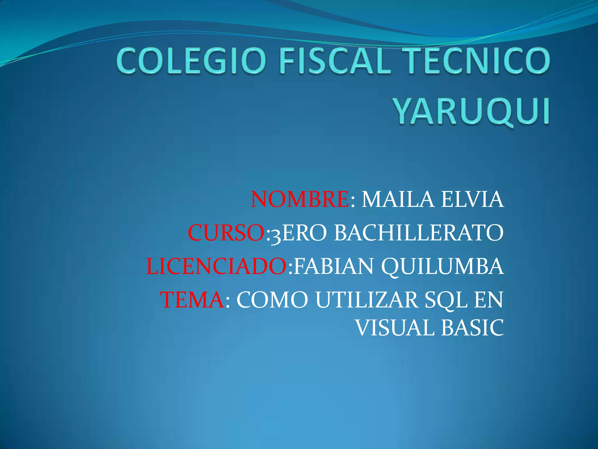 Este documento describe cómo utilizar SQL en Visual Basic. Explica que SQL es un lenguaje de consulta estructurado utilizado por todas las bases de datos conocidas. Detalla los pasos para crear una base de datos en Access y vincularla a un proyecto de Visual Basic, incluyendo la creación de tablas y la manipulación de datos mediante comandos SQL internos como Select, Insert, Update y Delete. También menciona algunos comandos SQL externos como Create, Drop y Alter.