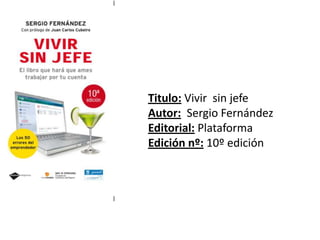 El libro "Vivir sin jefe" de Sergio Fernández enseña los 50 errores más comunes de los emprendedores. El autor, de 33 años y licenciado en publicidad y relaciones públicas, es un coach y consultor de comunicación. El libro habla sobre cómo crear una empresa para cambiar el mundo en lugar de solo ganar dinero, y evitar caer en la obsesión por objetivos económicos excesivamente altos que llevan a querer correr antes de andar.