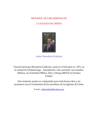 El documento ofrece instrucciones sobre métodos efectivos de evangelización. Explica que todo cristiano tiene la responsabilidad de compartir el evangelio y ofrece consejos sobre cómo hacerlo de manera respetuosa y efectiva. También discute el bautismo de creyentes y la importancia de integrar a los nuevos conversos en la iglesia. El objetivo es animar a los cristianos a predicar el evangelio y ayudar a las iglesias a crecer.