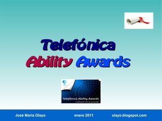 Los Ability Awards fueron creados en Irlanda por la organización Kanchi para mejorar las relaciones entre personas con discapacidad y la sociedad. Telefónica patrocina estos premios en Irlanda y ahora los trae a España por primera vez, con el apoyo de un prestigioso patronato, para reconocer a organizaciones públicas y privadas que hayan mejorado su negocio e integrado a personas con discapacidad. Un jurado preliminar seleccionó 48 compañías finalistas cuyas acciones e integración de la discapacidad serán reconocidas en