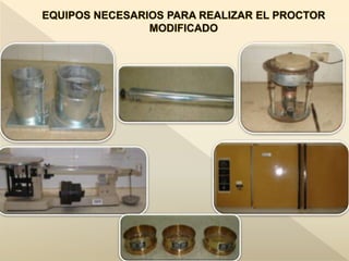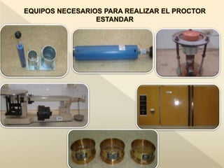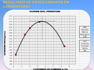 El documento describe los diferentes métodos y maquinarias utilizados para la compactación de suelos, incluyendo compactación estática, por impacto, vibración y métodos mixtos. Explica cómo funcionan equipos como rodillos lisos, rodillos de patas de cabra, compactadores neumáticos, pisones de explosión, placas vibratorias y rodillos vibratorios. También cubre ensayos de compactación como el Proctor Estándar y Modificado y métodos para controlar la densidad en obra.