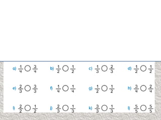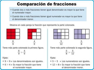 Para comparar fracciones con diferentes denominadores, se multiplican el numerador y denominador de cada fracción por los mismos números para igualar los denominadores, luego se comparan los nuevos numeradores.
