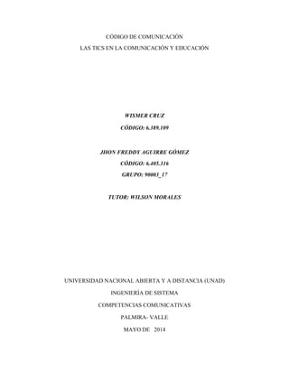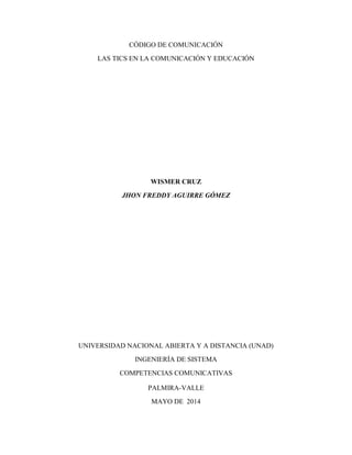 Este documento presenta un resumen de las TIC en la comunicación y educación utilizando un código de comunicación de letras y números. Indica que las TIC han tenido un impacto positivo al abrir nuevas oportunidades educativas y laborales. También han ayudado a reducir la brecha educativa al hacer la educación más accesible en áreas remotas. Finalmente, concluye que el uso de herramientas tecnológicas como videos e imágenes mejora la dinámica de las clases presenciales y permite a los estudiantes