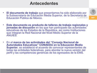 Las orientaciones que guiaron la formulación de las competencias genéricas incluyen: 1) Educar con un enfoque basado en competencias que desarrolla habilidades para movilizar recursos de forma integral; 2) Formar competencias que integran aprendizajes del pasado y los adaptan al mundo actual de forma humanista; 3) Definir competencias genéricas como conocimientos, habilidades, actitudes y valores indispensables para realizar actividades de forma autónoma en distintos saberes.