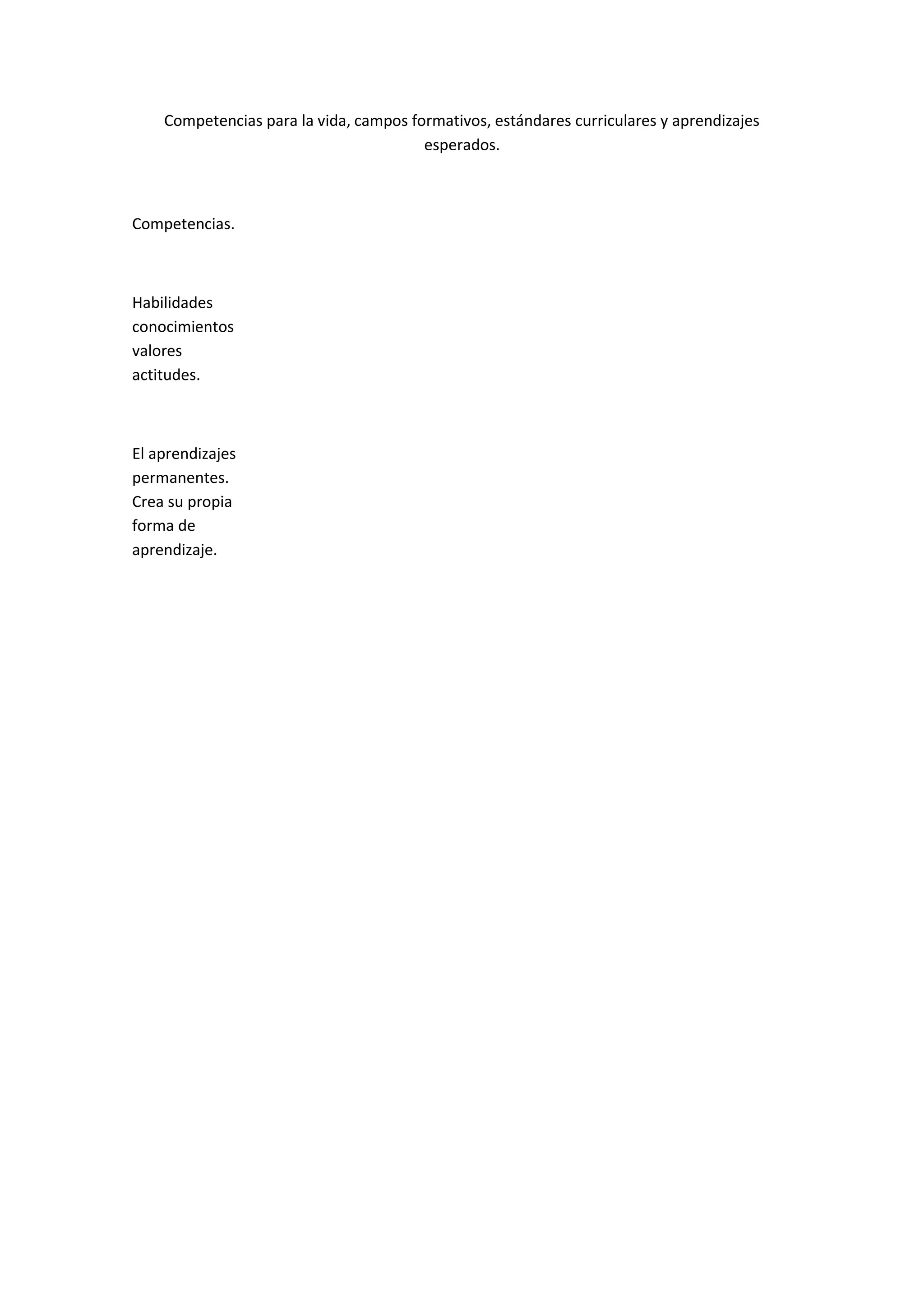 Las competencias para la vida incluyen habilidades, conocimientos, valores y actitudes. Los campos formativos y estándares curriculares definen los aprendizajes esperados para que los estudiantes puedan desarrollar un aprendizaje permanente y crear su propia forma de aprender.