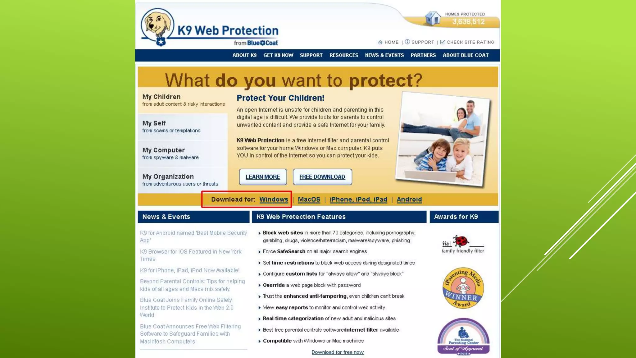 Este documento presenta un programa llamado K9 Web Protection que complementa el control parental de Windows 7 al bloquear sitios web pornográficos o perjudiciales para menores y permitir informes y control de tiempo de uso. Explica cómo descargar e instalar el programa, que requiere registro en su sitio web y proporciona una licencia por correo electrónico. El proceso de instalación es similar a otros programas e incluye aceptar términos, proporcionar una cuenta de administrador y reiniciar el sistema.