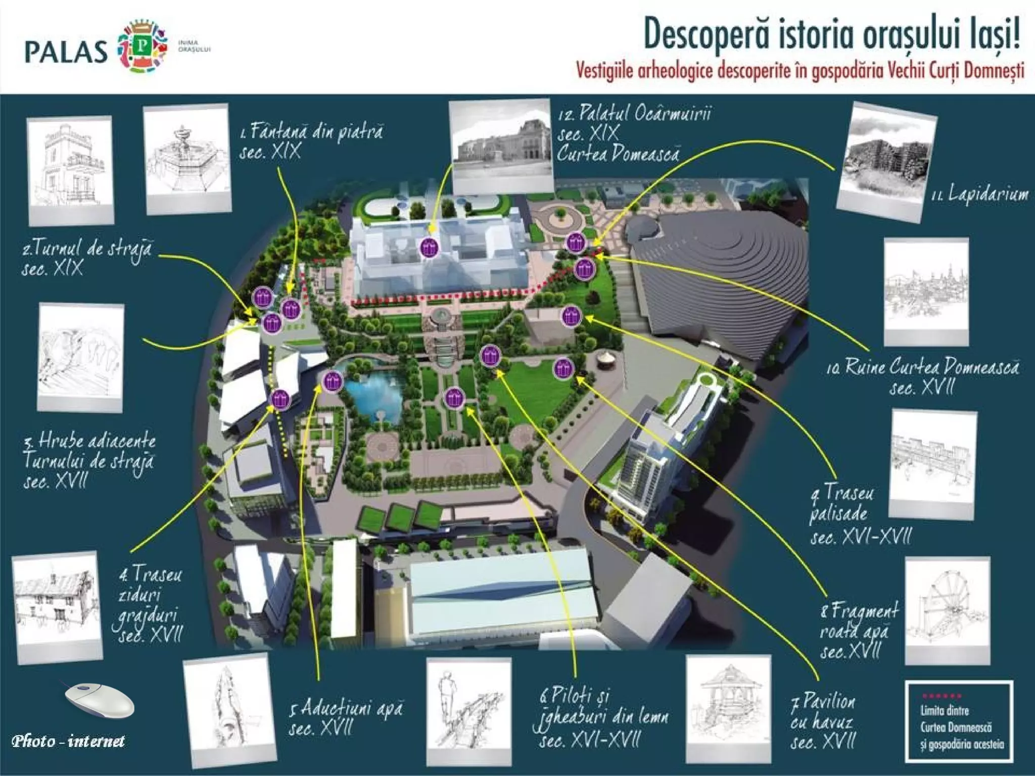 El documento describe vestigios arqueológicos en Iasi, Rumania. Incluye fotografías de sitios arqueológicos tomadas el 4 de junio de 2012. El autor de las fotos es Ennio Morricone.
