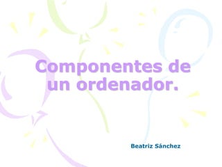 Los principales componentes de un ordenador son la placa base, la fuente de alimentación, las unidades de almacenamiento como las disqueteras y el disco duro, los cables IDE para conectar estos dispositivos, el microprocesador, y la memoria RAM. La placa base conecta todos los componentes y contiene el chipset y BIOS. Las fuentes de alimentación ATX son más seguras que las AT. Los discos duros pueden almacenar grandes cantidades de datos de forma permanente.