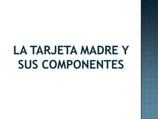 Este documento describe los principales componentes de una tarjeta madre de computadora, incluyendo la placa madre, los zócalos, el microprocesador, la memoria RAM, la unidad de disco duro, la tarjeta de video, la tarjeta de red, puertos como USB e interfaces como PCI. Explica las funciones básicas de cada componente y cómo permiten que los diferentes elementos de la computadora se comuniquen e interactúen entre sí.