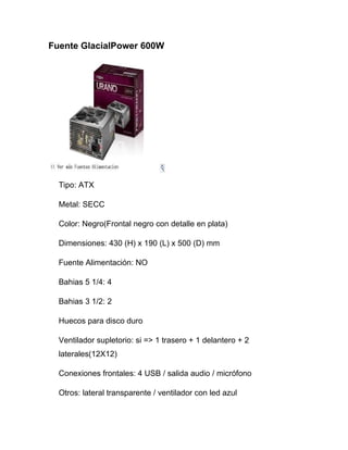 Este gabinete para PC ofrece múltiples funciones de monitoreo como temperatura del CPU, actividad de ventiladores y discos duros. Incluye un display que proporciona información crítica del sistema de manera continua. Su diseño sin herramientas facilita actualizaciones internas.