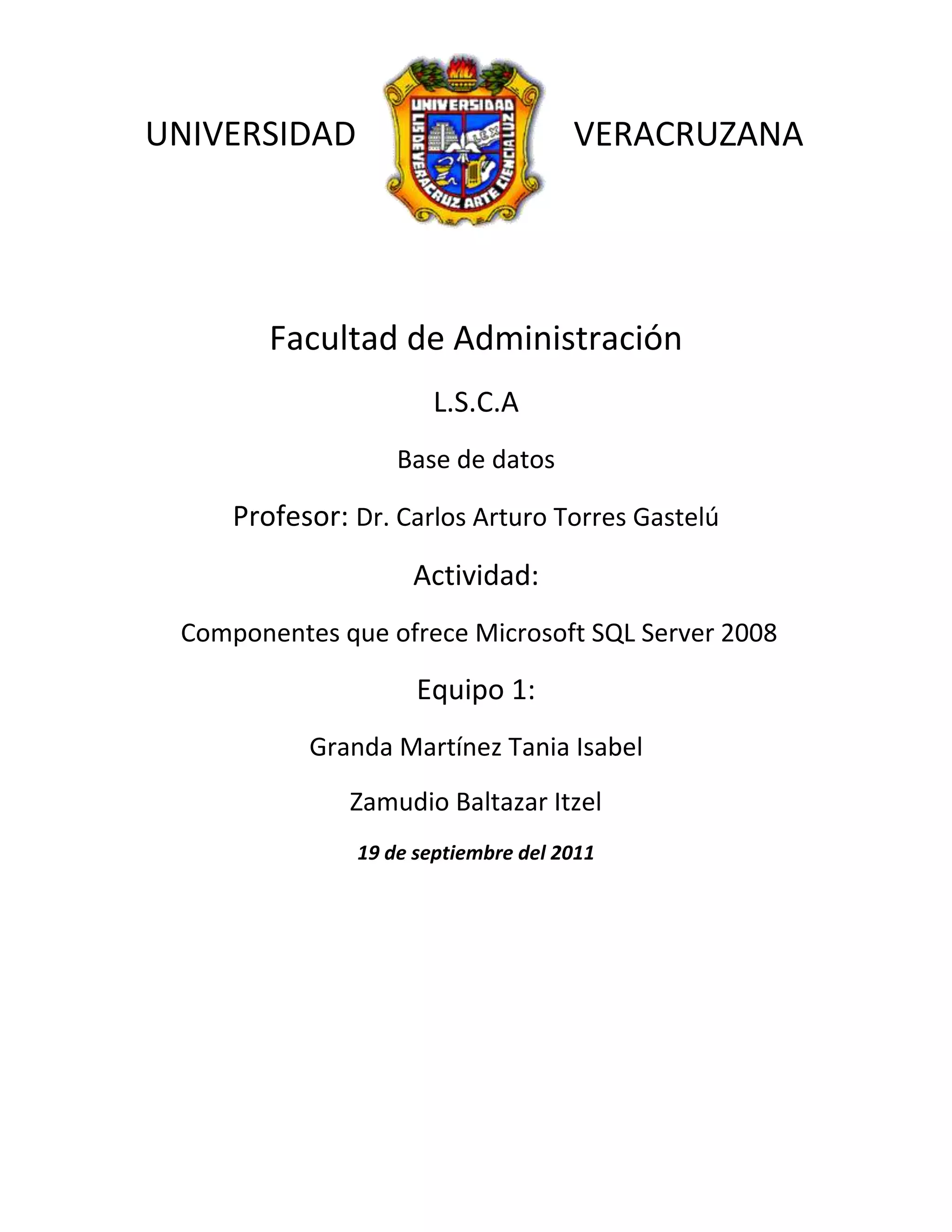 Microsoft SQL Server 2008 incluye cuatro componentes principales: