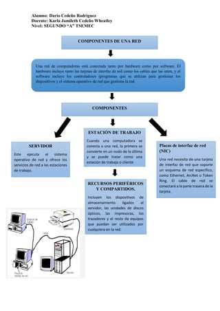 Una red de computadoras está conectada por hardware como tarjetas de interfaz de red y cables, y por software como controladores y el sistema operativo de red. Una red típicamente incluye un servidor que ejecuta el sistema operativo de red y ofrece servicios a las estaciones de trabajo, las cuales se conectan a través de tarjetas de interfaz de red compatibles con el esquema de red como Ethernet. Los recursos periféricos y compartidos como discos, impresoras y escáneres también se conectan a la red para ser usados por todos.