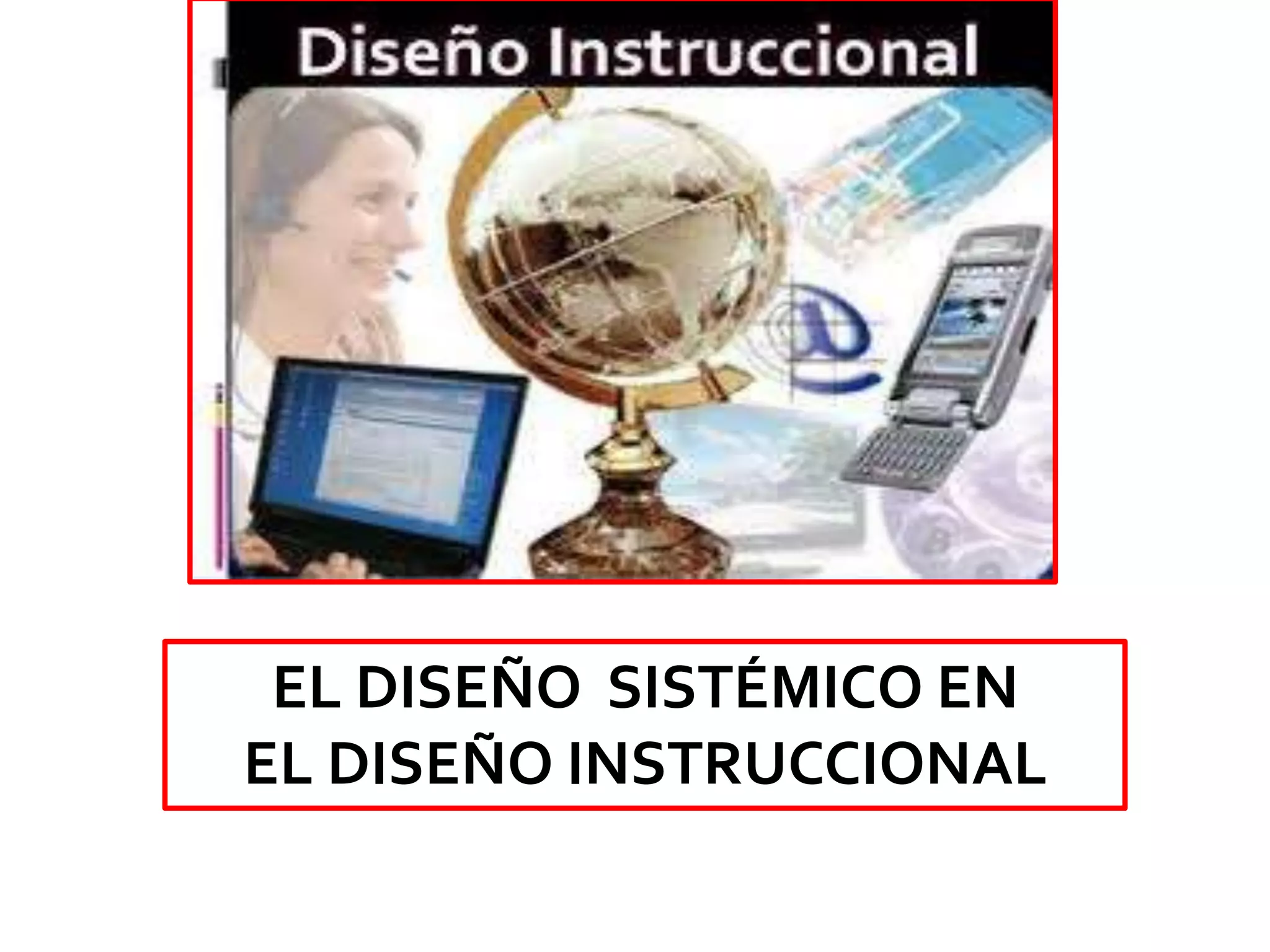 El diseño sistémico en el diseño instruccional implica 7 pasos: 1) evaluar a los estudiantes, recursos educativos y contexto, 2) definir objetivos basados en teorías de aprendizaje, 3) reorganizar contenidos de acuerdo a los objetivos y diagnóstico, 4) organizar una estructura lógica de contenidos, 5) organizar las condiciones como el cronograma y recursos, 6) designar estrategias para lograr los objetivos, y 7) establecer procedimientos de evaluación formativa y final.