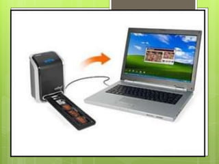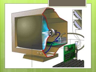 El documento describe los principales componentes de un computador, incluyendo el monitor, el escáner, la unidad de CD-ROM y el modem.