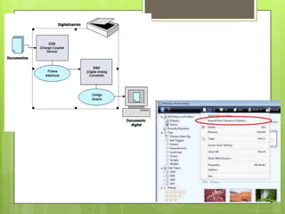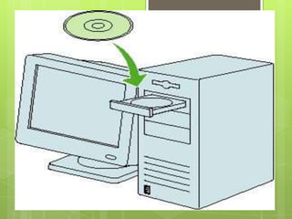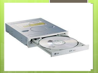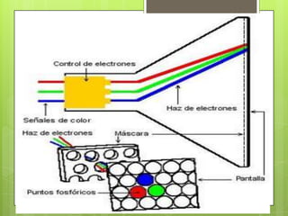 El documento describe los principales componentes de un computador, incluyendo el monitor, el escáner, la unidad de CD-ROM y el modem.