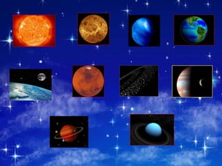 El documento proporciona información sobre los planetas del Sistema Solar, comenzando con el Sol y continuando con Mercurio, Venus, la Tierra, la Luna, Marte, el Cinturón de Asteroides, Júpiter, Saturno, Urano. Describe las características clave de cada planeta como su distancia al Sol, temperatura, composición, lunas y otros detalles relevantes.