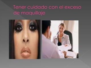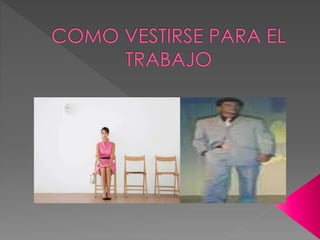 Este documento ofrece consejos sobre la ropa apropiada para una entrevista de trabajo, recomendando optar por una falda o pantalón formal, blusa de color sólido o estampado sutil, corbata de color oscuro y conservador, zapatos cerrados de menos de 6 cm, y pantimedias a juego. Además, incluye varias fuentes bibliográficas sobre la indumentaria adecuada para una entrevista.