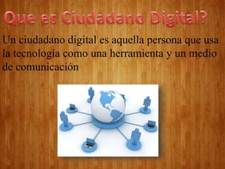 El documento proporciona instrucciones para ser un ciudadano digital responsable, incluyendo usar la tecnología de manera segura y respetuosa, proteger la privacidad propia y de los demás, y respetar los derechos de autor. También enfatiza la necesidad de cuidar a los menores en ambientes tecnológicos.