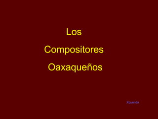El documento resume la vida y obras de 7 compositores oaxaqueños importantes: Macedonio Alcalá, Álvaro Carrillo, Andrés Henestrosa, José López Alavés, Ignacio Fernández Esperón, Jesús Rasgado y Manuel Reyes Cabrera. Describe brevemente su lugar de nacimiento, sus principales obras musicales y contribuciones a la música de Oaxaca.