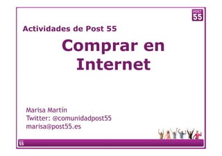 Este documento proporciona una guía sobre cómo realizar compras en Internet de forma segura. Explica las características de la sociedad digital y el crecimiento del comercio electrónico. Luego describe los tipos de sitios web de compra online como tiendas, outlet, compras grupales y segunda mano. Finalmente, ofrece consejos sobre cómo evaluar un sitio web, producto, precio y realizar la transacción de forma segura.