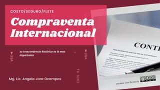 Este documento describe los aspectos clave de las transacciones de compraventa internacional, incluyendo la legislación aplicable, los documentos requeridos como facturas y conocimientos de embarque, los términos de entrega INCOTERMS, y los elementos y tipos de contratos de seguro para proteger la transacción.
