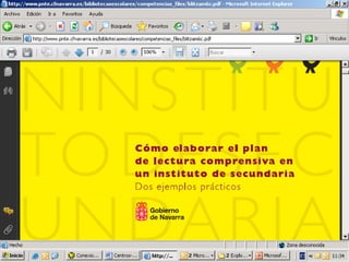 Este documento describe el desarrollo e implementación de un plan para mejorar la comprensión lectora en las escuelas secundarias de Soria, España. El plan se basó en las evaluaciones que mostraron necesidad de mejora, y se centró en capacitar a los maestros, desarrollar materiales y estrategias de lectura, y apoyar planes de lectura en cada escuela. El objetivo final era que todos los maestros contribuyeran al desarrollo de la comprensión lectora de los estudiantes en todas las materias.