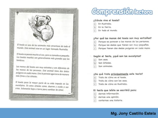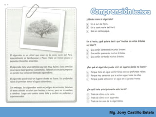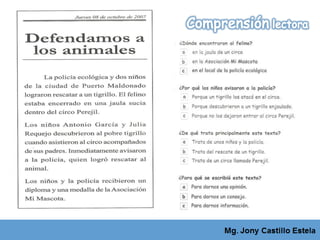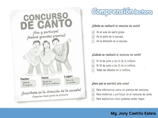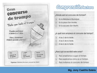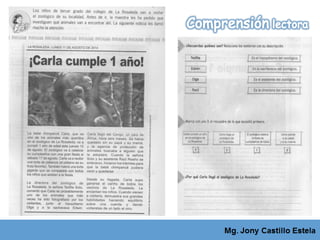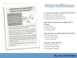Este documento presenta varias estrategias para trabajar la comprensión lectora en los estudiantes desde tercero a quinto grado de primaria según las Rutas de Aprendizaje. Describe estrategias como leer textos predecibles, realizar caminatas de lectura, interrogar textos, elaborar fichas de personajes, usar organizadores gráficos, y más. Además, explica cómo aplicar estas estrategias antes, durante y después de la lectura para fortalecer la comprensión de los estudiantes.