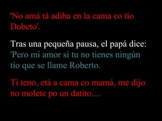 Una niña habla por teléfono con su padre, quien le pide que diga que el coche del papá está llegando para que su madre salga de la cama donde está con el tío Roberto. La niña hace lo que su padre dice y como resultado su madre sale corriendo desnuda y se golpea, quedando inconsciente en el suelo, mientras que el tío Roberto también sale desnudo y cae por la ventana a la piscina, aparentemente muriendo. El padre se da cuenta que ha marcado el número equivocado.