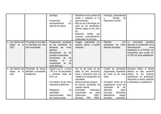 La institución educativa ha establecido 8 indicadores operacionales para medir su gestión. Se espera que los docentes utilicen de manera efectiva los materiales educativos, incluyendo las Rutas de Aprendizaje, y que la comunidad educativa participe en al menos dos jornadas anuales de planificación y revisión del PATMA. Asimismo, se busca demostrar progreso en el aprendizaje de los estudiantes y reducir el abandono escolar mediante el fortalecimiento del compromiso de los padres de familia.
