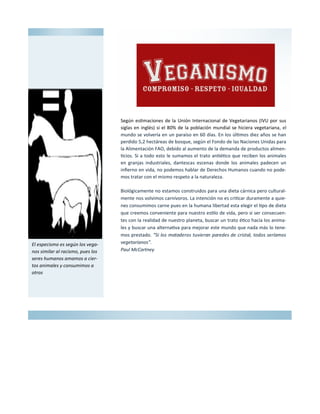 Este documento discute si los humanos son carnívoros por naturaleza. Señala que aunque los humanos han comido carne por mucho tiempo, nuestra anatomía es más similar a la de animales herbívoros. También destaca los impactos negativos del consumo excesivo de carne en el medio ambiente y el bienestar animal. Algunas personas han adoptado el veganismo como una forma de vida más respetuosa con los animales y el planeta.